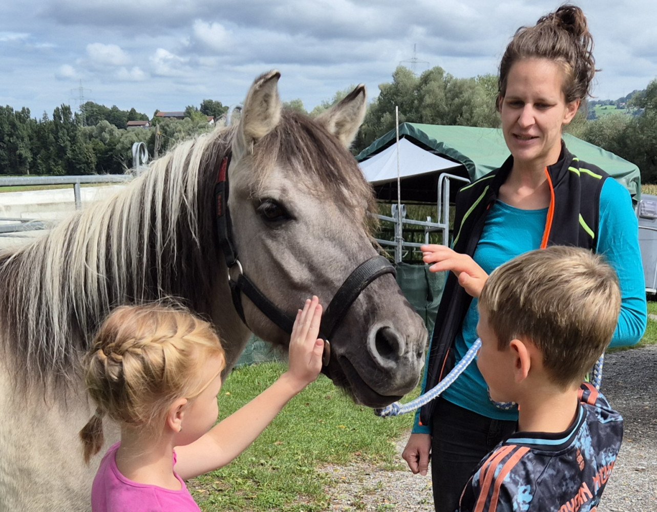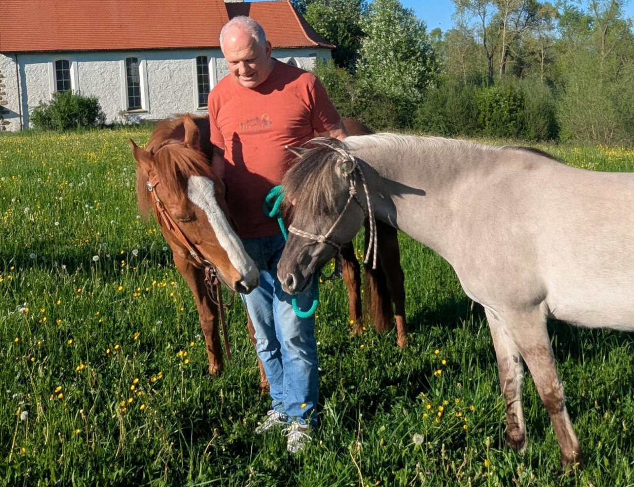 Unsere beiden Pferde leben in einer kleinen Herde mit weiteren Pferden, die bei uns eingestellt sind. Melody, unsere neugierige Dülmener Stute, ist die Kleinste in der Herde, aber zugleich die Selbstbewussteste. Sie ist auch Fremden gegenüber sehr aufgeschlossen und freut sich über den Besuch von Menschen, die etwas mit ihr unternehmen möchten. Gini, unsere Quarter Horse Stute ist sehr feinfühlig. Emotionen ihres Gegenübers erspürt sie sehr schnell und spiegelt sie unmittelbar. Im Kontakt mit Fremden ist sie zunächst eher vorsichtig. Wenn sie aber mal Vertrauen gefasst hat, ist sie eine treue Wegbegleiterin.